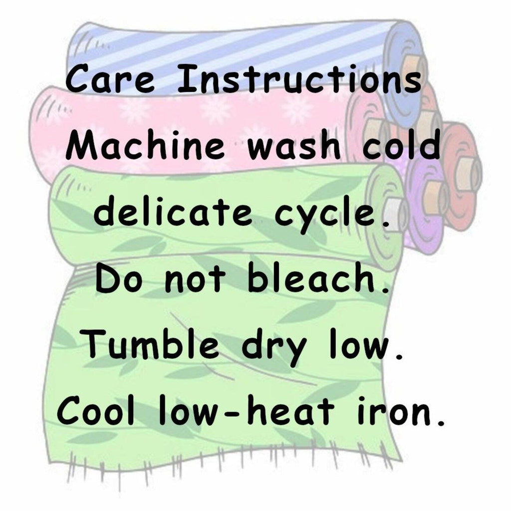 CARE INSTRUCTIONS: Wash darks and lights separately. Machine wash cold on delicate cycle. Do not bleach. Tumble dry low or line dry. Use warm iron if necessary.