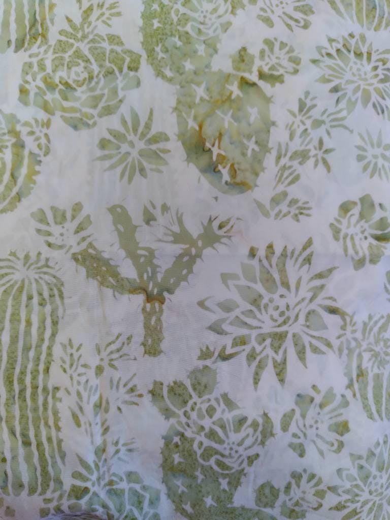 This is a once a year custom special order fabric issued each May. Yardage is sent as one continuous piece of fabric. Larger scale high plains desert or southwest design of different blooming cactus on a white background.